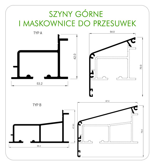 SZYNY GÓRNE I MASKOWNICE DO PRZESUWEK
